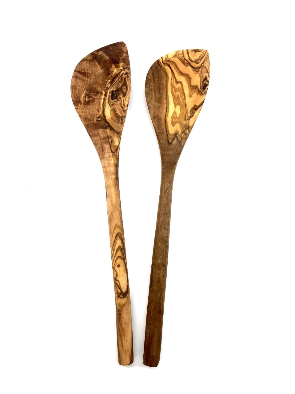Kulmikas kokkauslusikka oliivipuuta.